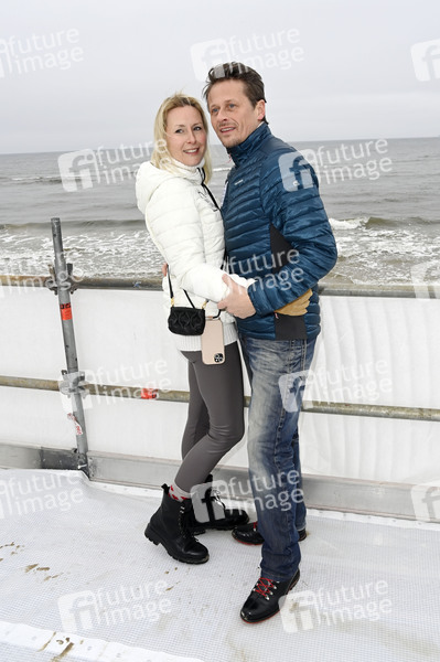 Roman Knizka mit Partnerin Franziska Hippe beim 9. Baltic Lights 2025 Charity-Schlittenhunderennen zu Gunsten der Welthungerhilfe zwischen der Seebrücke Ahlbeck und der Seebrücke Heringsdorf. Heringsdorf, 01.03.2025