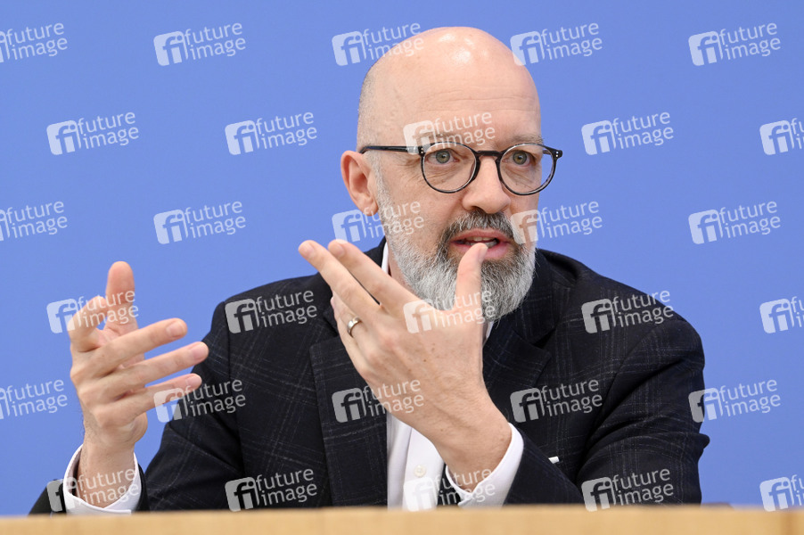 Timo Wollmershäuser bei der Bundespressekonferenz Gemeinschaftsdiagnose der Wirtschaftsforschungsinstitute Frühjahr 2025 im Haus der Bundespressekonferenz. Berlin, 10.04.2025