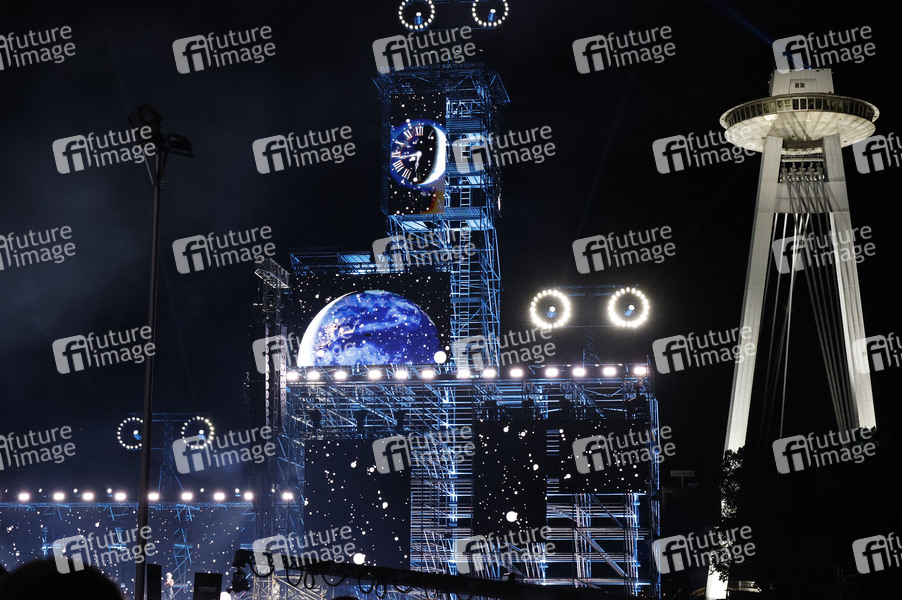 Lichtshow beim Starmus Opening Concert 'Bridge from the Future' auf der Open Air Bühne. Bratislava, 12.05.2024