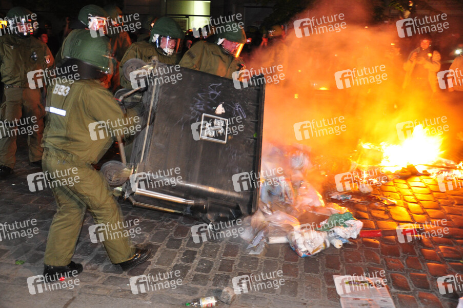 Demo, Demonstranten, Maidemonstration, Polizei, Polizisten, Polizist, Straßenschlacht