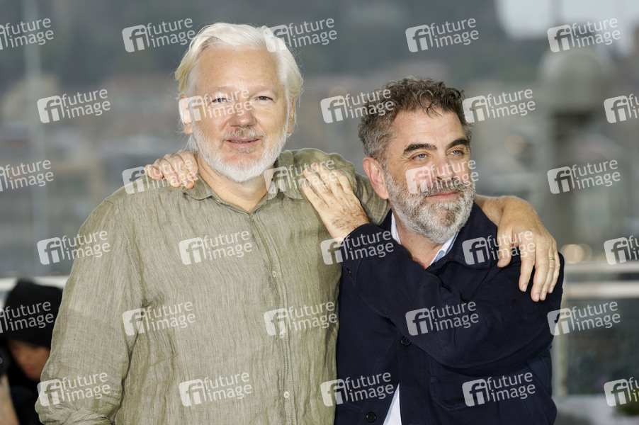 Julian Assange und Eugene Jarecki beim Photocall zum Dokumentarfilm 'The Six Billion Dollar Man' auf dem Festival de Cannes 2025 / 78. Internationale Filmfestspiele von Cannes am Palais des Festivals. Cannes, 20.05.2025