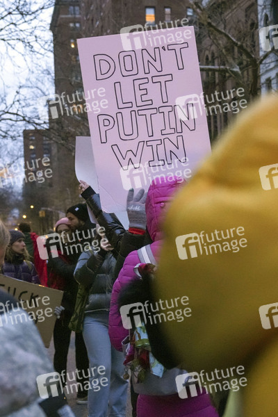 Ukraine-Russland-Krise, internationale Krise, Protest, Banner, Wut Einmarsch, Krieg, Angriff, Times Square, ukrainische Botschaft, Solidaritätsaktion, Solidarität, Ukrainekonflikt, Politik, Solidaritätsbekundung, Krise, Krisen, Konflikt, Demo, Demonstranten, Protest, Einmarsch, Angriff
