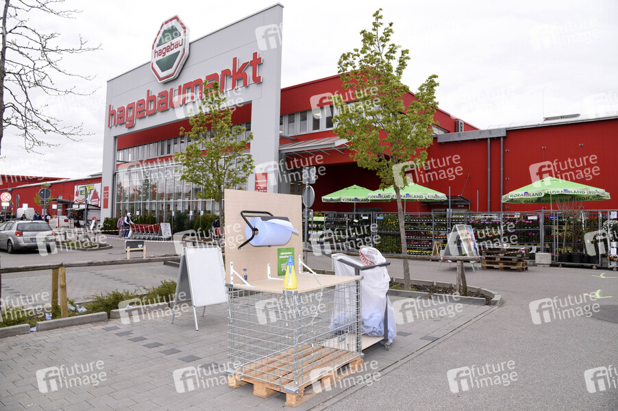 Öffnung der Gartencenter und Baumärkte nach der Lockerung der Corona-Maßnahmen in Bayern, hier der Hagebaumarkt im Gewerbegebiet in Brunnthal. Brunnthal, 20.04.2020