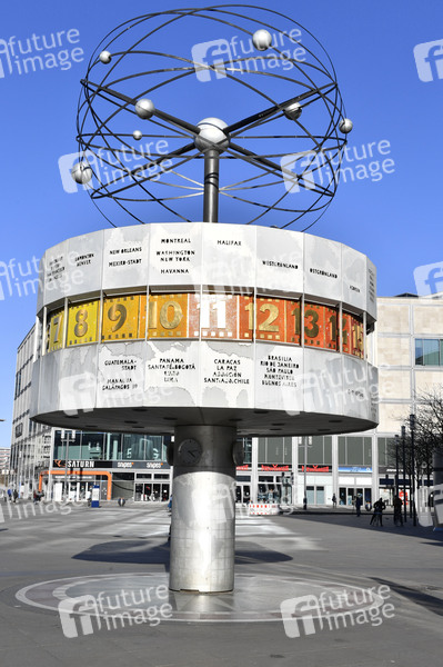 Die Weltzeituhr auf dem Alexanderplatz. Die Berliner folgen den Empfehlungen und Maßnahmen der Bundesregierung zur Bekämpfung der Corona-Epidemie. Berlin, 22.03.2020