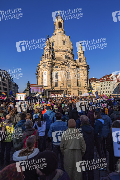 Demonstration unter dem Motto 'Wir sind die Brandmauer' gegen die AfD und den Rechtsruck auf dem Neumarkt. Dresden, 25.02.2024