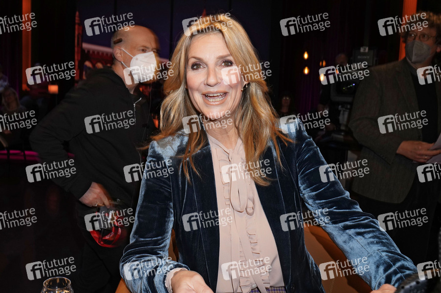 Kim Fisher bei der Aufzeichnung der MDR/rbb-Talkshow 'Riverboat' im Studio A im rbb Fernsehzentrum. Berlin, 10.12.2021