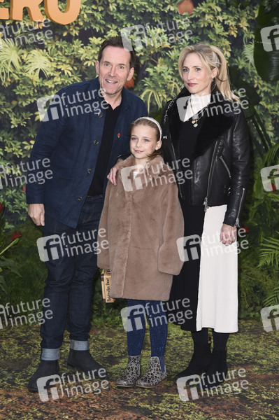 Ben Miller mit Lana Miller und Ehefrau Jessica Parker bei der Premiere des Kinofilms 'Paddington in Peru' im Odeon Luxe Leicester Square. London, 03.11.2024
