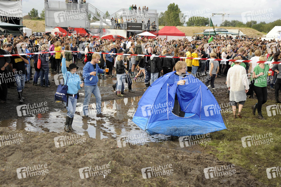 Publikum, Konzertbesucher, Festivalbesucher, Regen, Matsch, Gummistiefel