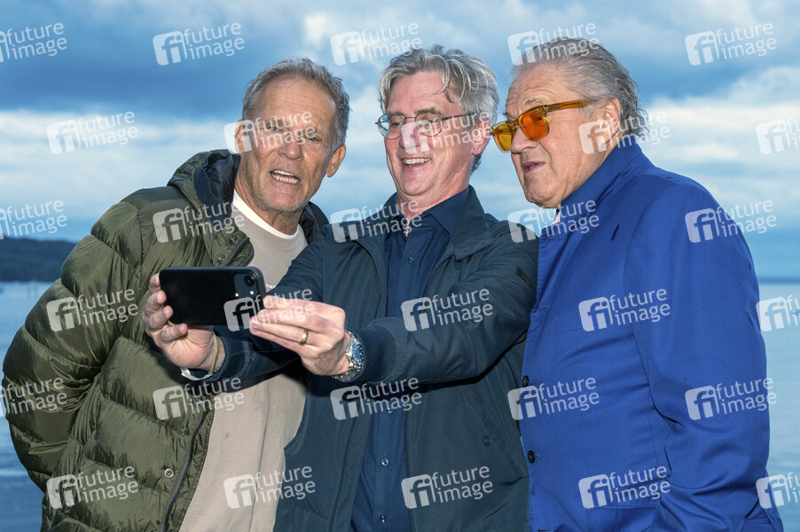Christian Tramitz, Matthias Helwig und Michael Brandner bei der Premiere von zwei neuen Folgen der ARD-Vorabendserie 'Hubert ohne Staller' auf dem Open Air Starnberg 2025 im Open Air Kino im Seebad. Starnberg, 05.08.2025