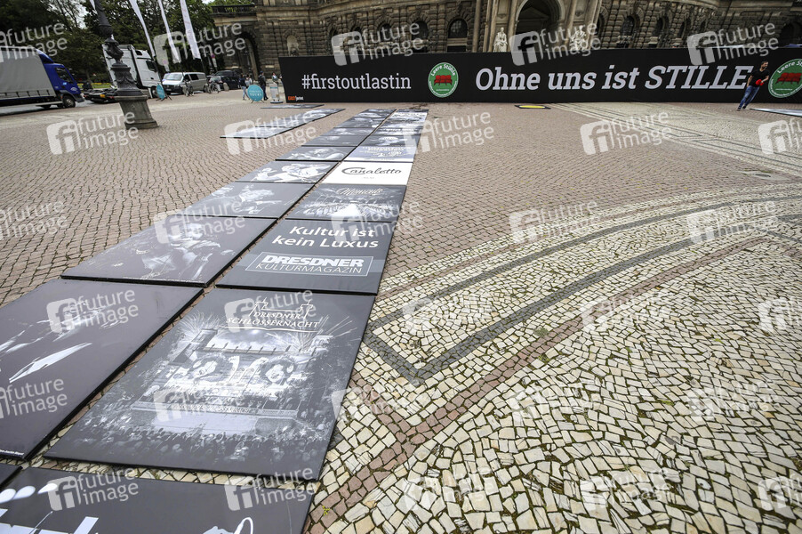 Demonstration 'Ohne uns ist Stille' der Organisation 'Leere Stühle' auf dem Theaterplatz in der historischen Dresdner Altstadt. Künstler, Veranstalter und Unternehmen der Veranstaltungsbranche wie Caterer und Techniker demonstrieren gemeinsem, um auf die Probleme und Wichtigkeit ihrer Branche aufmerksam zu machen. Dredsen, 05.06.2020