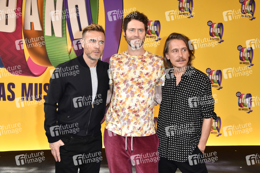 Gary Barlow, Howard Donald und Mark Owen von Take That beim Photocall zu 'The Band - Das Musical' im Stage Theater des Westens. Berlin, 01.04.2019