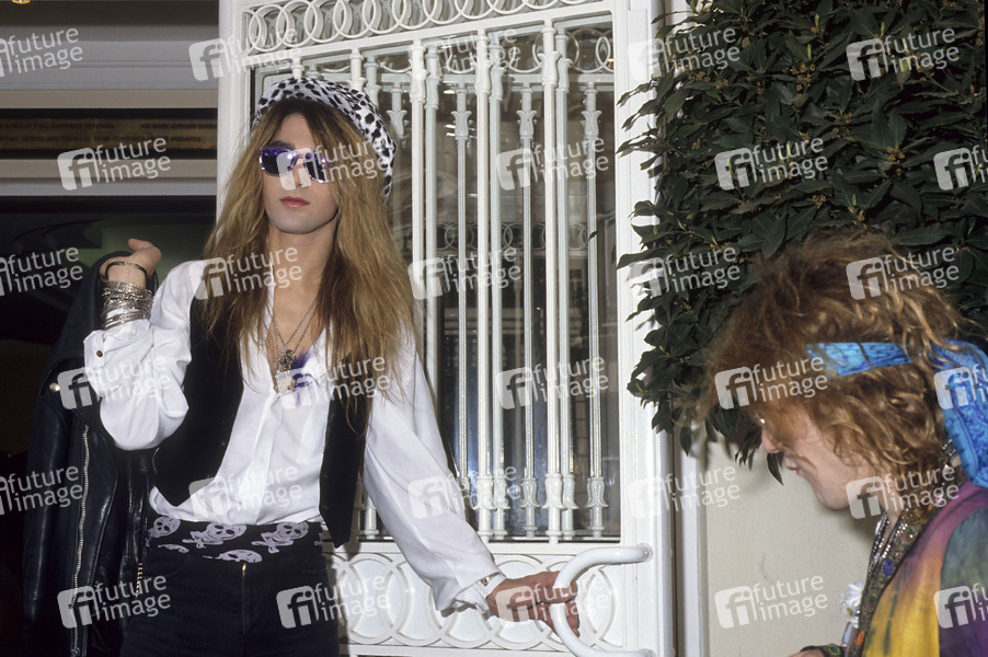Vik Fox von Enuff Z'Nuff bei einem Photoshooting im Columbia Hotel. London, 26.04.1990