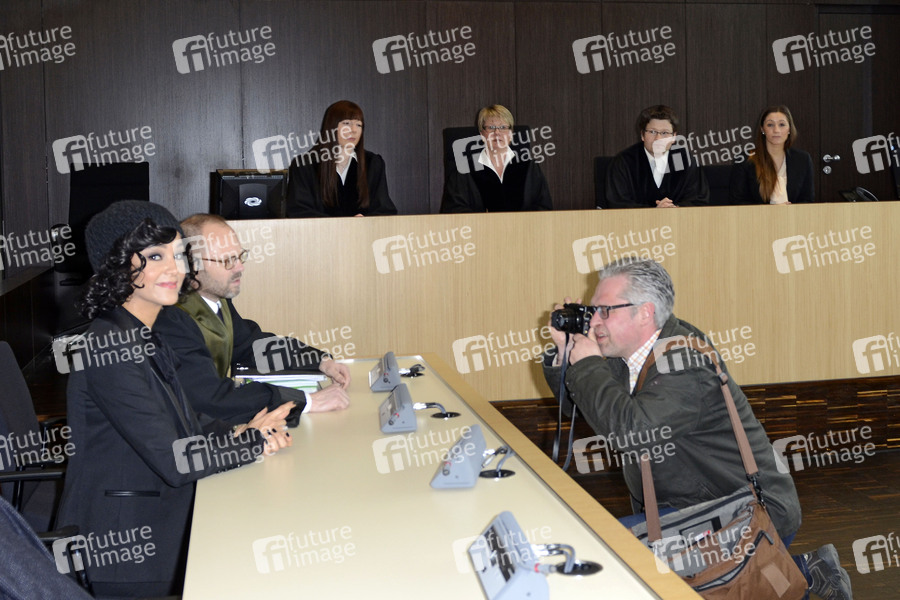 Verona Pooth mit ihrem Anwalt vor der 11. grossen Strafkammer des Düsseldorfer Landgerichts 5. Zivilkammer. Die Münchner Agentur 'Krug Mediapool' von Martin Krug verklagt Verona Pooth vor dem Landgericht Düsseldorf. Den Streitwert hat das Gericht vorläufig auf 70 000 Euro festgelegt. Düsseldorf, 26.02.2014