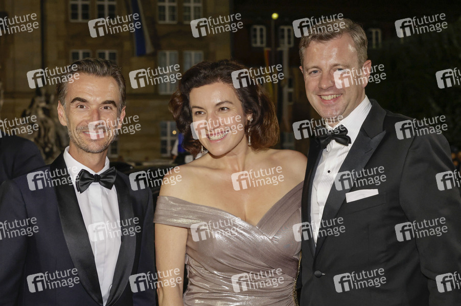 Florian Silbereisen und Dorothee Bär mit Ehemann Oliver Bär beim Staatsempfang nach der Eröffnung der 113. Richard-Wagner-Festspiele 2025 mit der Neuinszenierung von 'Die Meistersinger von Nürnberg' im Neuen Schloss Bayreuth. Bayreuth, 25.07.2025