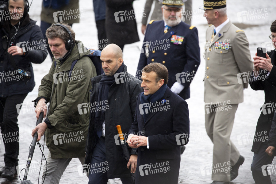 Emmanuel Macron bei der 101. Jahrfeier des Waffenstillstands von 1918 am Triumphbogen. Paris, 11.11.2019