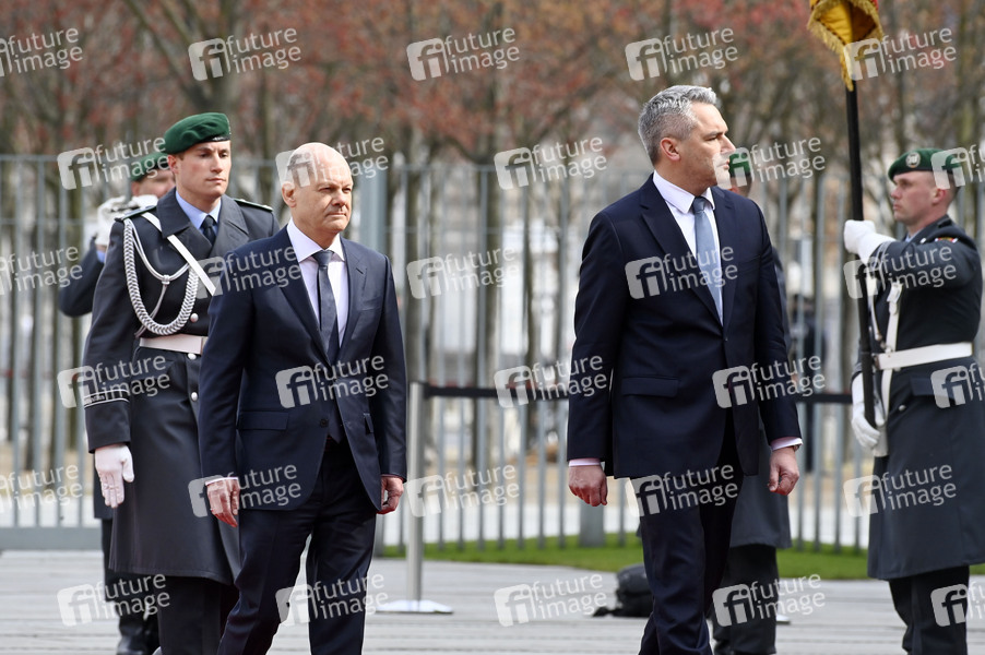 Olaf Scholz und Karl Nehammer beim Empfang des Bundeskanzlers der Republik Österreich mit militärischen Ehren im Bundeskanzleramt. Berlin, 31.03.2022