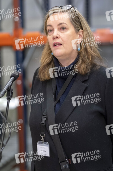 Gesundheitsministerin Svandis Svavarsdottir bbei der Ankunft der ersten Lieferung des Corona-Impfstoffs von Pfizer/Biontech im Lager des Logistikunternehmens Distica auf Island, Gardabaer, 28.12.2020