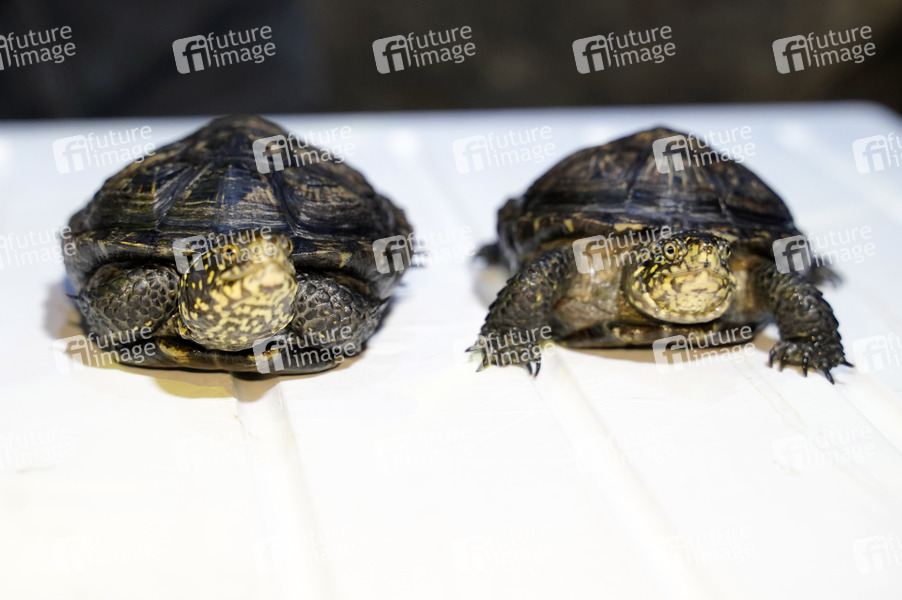 Sea Life, Schildkröten, Schildkröte. Putzen, Zahnbürste, Europäische Sumpfschildkröte, Extrapflege, Großreinigung, Wathose, Fensterwischer, Zollstock
