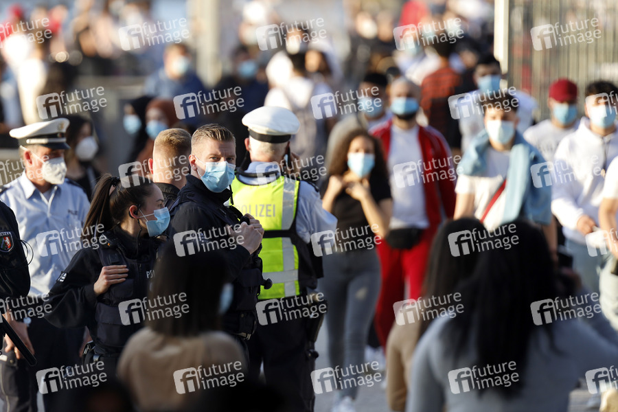 Polizei, Polizeikontrolle, Polizeidienst, Polizeistreife, Polizisten, Polizist, Polizistin, Polizeieinsatz, Beamte, Streife, Blaulicht, Polizeimaßnahme, Masken-Kontrolle, Maskenkontrolle, Verwarnung, Corona-Verstöße, Coronaverstöße, Corona-Verstoß, Coronaverstoß, Rheinboulevard, Kölner Rheinufer, Infektionsgeschehen, 7-Tage-Inzidenz, Abstand, Abstandsregeln, Ausgangsbeschränkung, Ausgangsbeschränkungen, Ausgangssperre, Ausgangssperren, Ausgangsverbot, Ausgangsverbote, Beschränkung, Bewegungsfreiheit, Corona, Coronaepidemie, Coronainfektion, Coronakontrolle, Corona-Kontrolle, Coronakrise, Corona-Krise, Coronamaßnahmen, Corona-Maßnahmen, Corona-Notbremse, Corona-Pandemie, Corona-Regeln, Corona-Schutz, Corona-Schutzmaßnahmen, Coronaschutzverordnung, Corona-Schutzverordnung, Corona-Test, Coronaviren, Corona-Viren, Coronavirus, Corona-Virus, Corona-Welle, Coronazahlen, Corona-Zahlen, Covid19, Covid-19, dritte Welle, Epidemie, erneuter Lockdown, Gesellschaft, Gesundheitsschutz, harter Lockdown, Hotspot, Hot Spot, Impfen, Impfverordnung, Infektionsgefahr, Infektionsschutzgesetz, Innenstadt, Inzidenzwert, Kontaktbeschränkungen, Lock Down, Lockdown, Lockdown Light, Maskenpflicht, Maßnahmen, Mindestabstand, Neuinfektionen, Notbremse, Oster-Lockdown, Pandemie, Pandemie-Gesetz, Passanten, R-Wert, Shopping, Sonnenlicht, Viren, Virus, Wocheninzidenz, zweite Welle, Infektionslage, Kontaktverbot, Versammlungsverbot, Menschenansammlung, Social Distancing