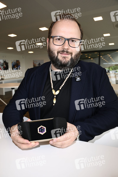 Stephan Richter von Juwel 1 mit einem Ring mutmaßlich aus dem Nachlass von Rudolph Moshammer beim Audi Ascot Renntag 2025 auf der Galopprennbahn Neue Bult. Hannover-Langenhagen, 24.08.2025