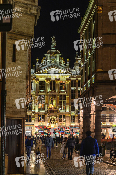 Gildehäuser auf dem Grand-Place / Grote Markt in der Nacht. Brüssel, 27.10.2021