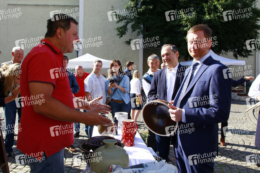 Oberbürgermeister Octavian Ursu und Ministerpräsident Michael Kretschmer bei der Eröffnung vom 22. Schlesischen Tippelmarkt. Görlitz, 18.07.2020