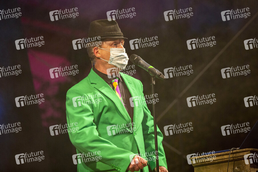 Bernd Kohlhepp / Herr Hämmerle beim Open Air Spezial 'Hämmerle kommt! Mit Fola Dada!' im Kulturhaus Caserne. Friedrichshafen, 27.06.2020