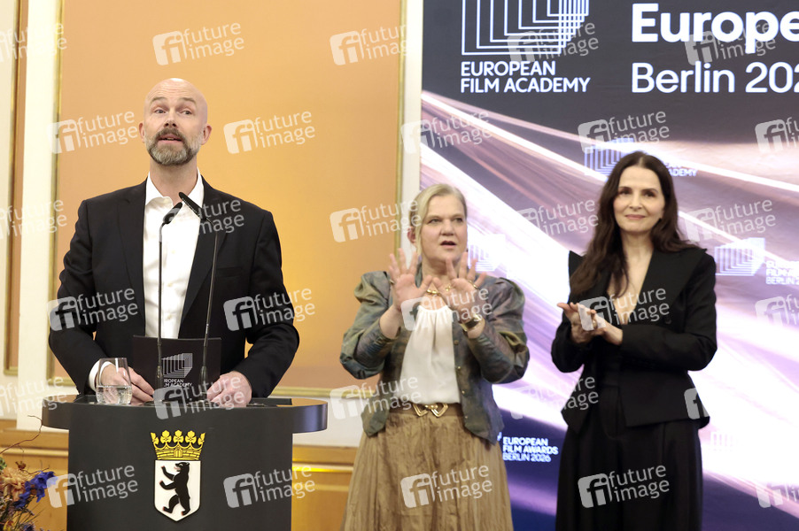 Matthijs Wouter Knol, Ada Solomon und Juliette Binoche bei der Mayor's Night der European Film Academy im Rahmen des 38. Europäischen Filmpreises im Roten Rathaus. Berlin, 16.01.2026