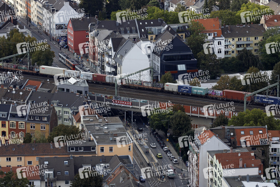 Ein Bahndamm und Häuser in Köln Ehrenfeld gesehen vom Colonius aus. (Themenbild, Symbolbild) Köln, 09.09.2020