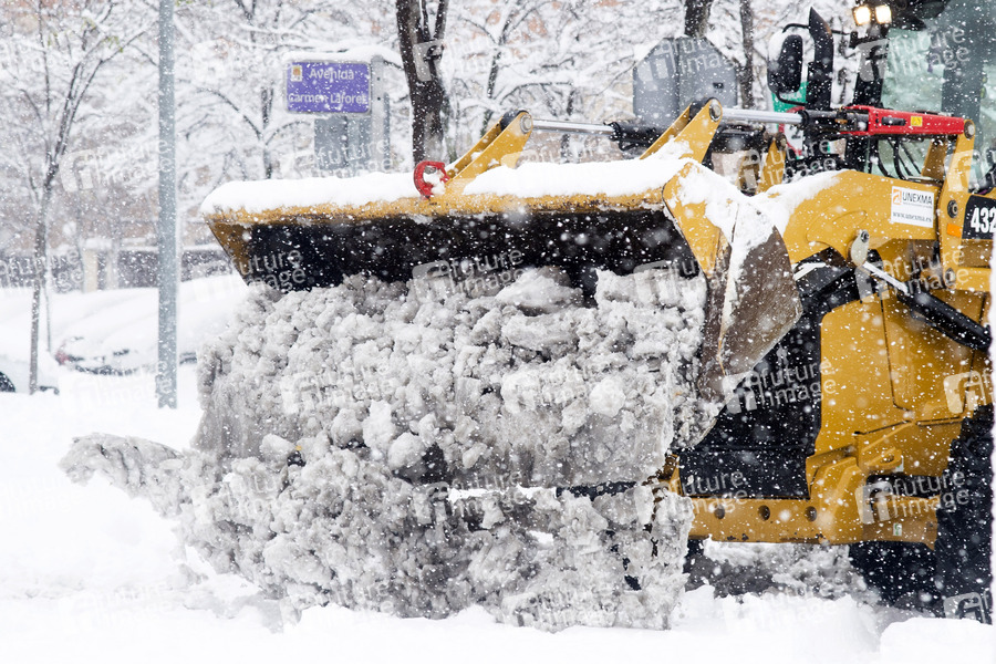 Das Sturmtief Filomena sorgt in der Region Madrid und anderen Teilen Spaniens mit starken Schneefällen für Chaos. Die Hauptstadt Madrid wurde durch historisch heftigen Schneefall lahmgelegt. Seit 50 Jahren hat es nicht so geschneit. Der Verkehr ist in weiten Teilen des Landes zusammengebrochen. Torrejón de Ardoz, 09.01.2021