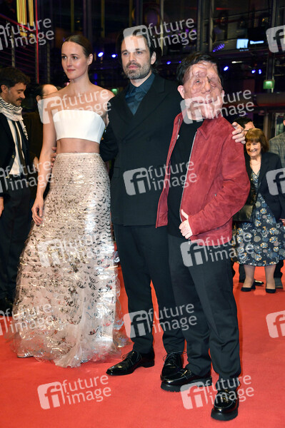 Renate Reinsve, Sebastian Stan und Adam Pearson bei der Premiere des Kinofilms 'A Different Man' auf der Berlinale 2024 / 74. Internationale Filmfestspiele Berlin im Berlinale Palast. Berlin, 16.02.2024
