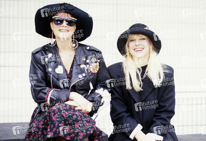 Melissa Brooke Belland und Tracey Bryn von Voice of the Beehive bei einem Photoshooting auf dem Dach von Ploydor Records. London, 12.08.1988