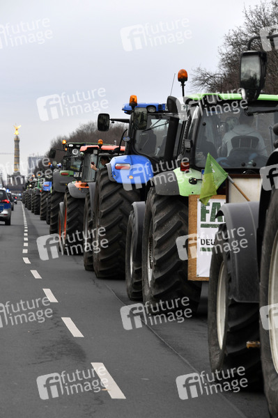 Bauern aus allen Landesteilen Deutschlands protestieren gegen die Agrarpolitik der Regierung mit ihren Traktoren vor dem Brandenburger Tor. Berlin, 29.01.2021