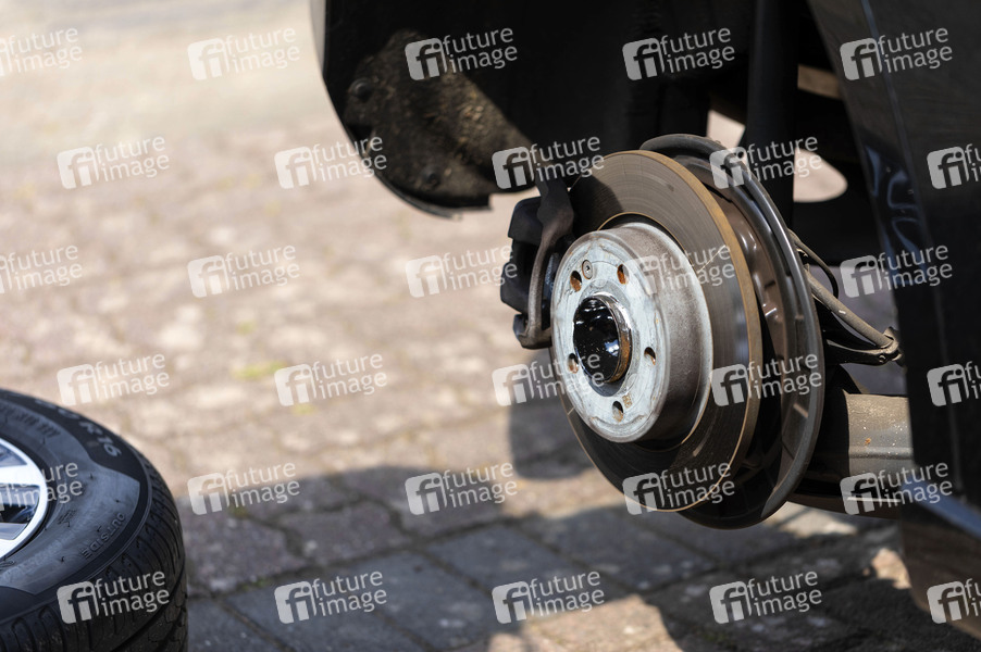 Radwechsel ist der Tausch kompletter Räder, also Reifen auf Felgen, bei Kraftfahrzeugen, wie er beim Wechsel zwischen Sommer- und Winterreifen vorgenommen wird. Zum Anheben des Fahrzeugs wird ein Wagenheber verwendet. Die Radmuttern werden mit Hilfe eines Kreuzschlüssels, eines Drehmomentschlüssels oder vergleichbarem Werkzeug gelöst und angezogen. (Symbolfoto, Themenfoto) Niedernwöhren, 01.06.2024