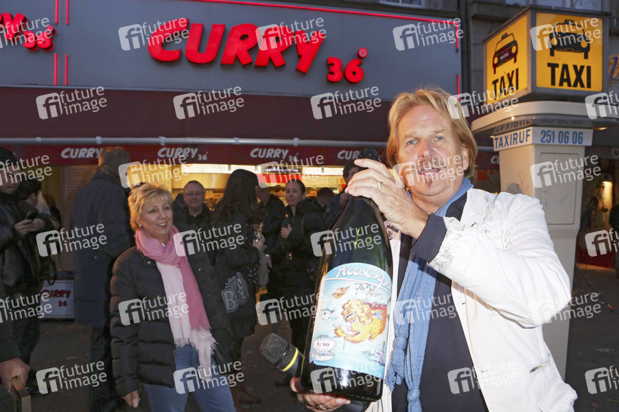 Frank Zander präsentiert sein Curry 36 Piccolöchen am Curry 36, Berlin