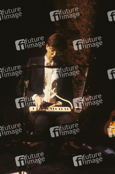 Simon Jeffes vom Penguin Cafe Orchestra live im Mermaid Theatre. London, 16.12.1984