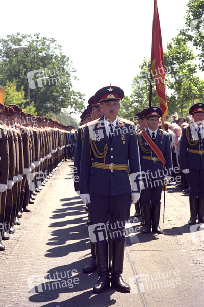 Russische Soldaten anlässlich der Abschiedsparade zur Verabschiedung der russischen Streitkräfte aus Deutschland in Schöneweide. Berlin, 25.06.1994