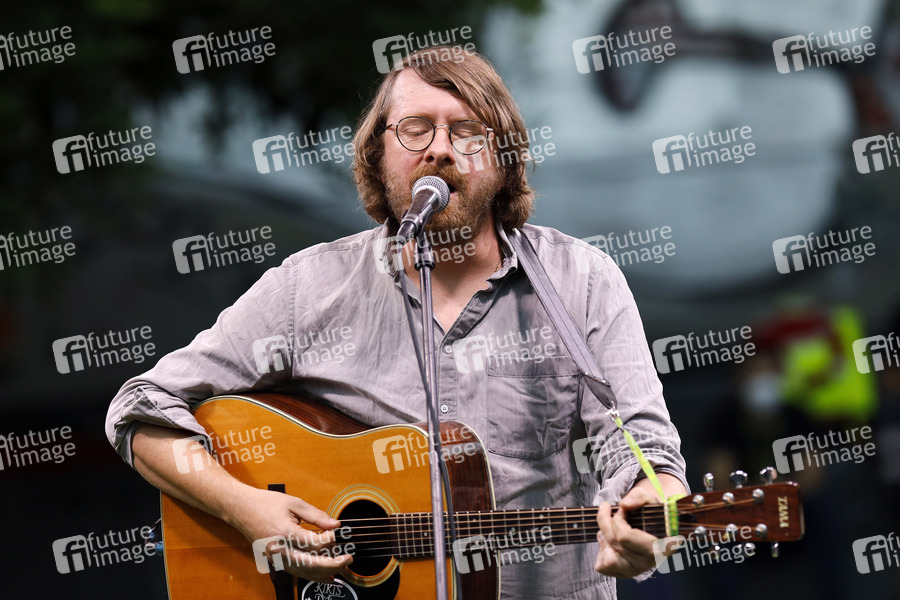 Francesco Wilking von Die Höchste Eisenbahn und Tele bei einer Wahlkampfveranstaltung von Bündnis 90/Die Grünen auf dem Wilhelmsplatz. Köln, 02.09.2021