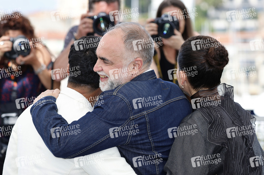 Iago Xavier, Karim Ainouz und Nataly Rocha beim Photocall zum Kinofilm 'Motel Destino' auf dem Festival de Cannes 2024 / 77. Internationale Filmfestspiele von Cannes am Palais des Festivals. Cannes, 23.05.2024