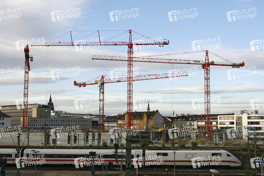Bauzeit 2006-2008, Einkaufszentrum am Hauptbahnhof, Ernst-August-Platz, Kräne, Kran, Zug, Intercity Express, ICE, Bahnhof
