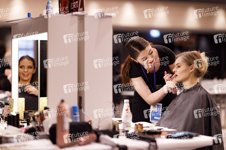 Models der Lambertz Monday Night 2020 werden geschminkt. Köln, 03.02.2020