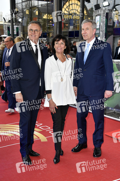 Roland Mack mit Ehefrau Marianne Mack und Christian Wulff bei der Verleihung des 22. Radio Regenbogen Award 2019 in der Europa-Park Arena. Rust, 12.04.2019