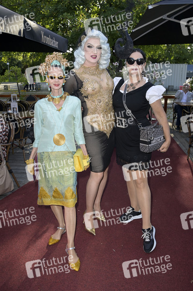 Britt Kania, Sheila Wolf und Gast bei der Jubiläumspremiere des Musicals 'Cabaret - das Berlin-Musical' im Tipi am Kanzleramt. Berlin, 13.07.2024