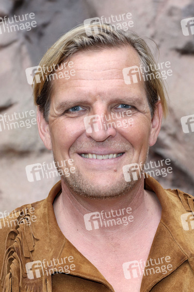 Sascha Gluth beim Pressetermin der Karl-May-Spiele 2019 mit Szenen aus 'Unter Geiern - Der Sohn des Bärenjägers' im Freilichttheater am Kalkberg. Bad Segeberg, 21.06.2019