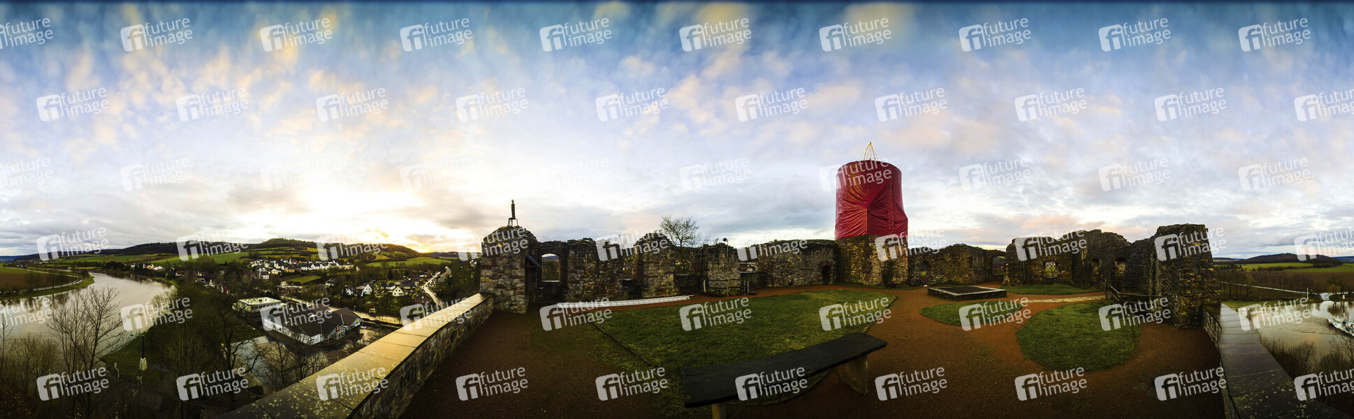 Advent, Adventszeit, Weihnachtszeit, Weihnachten, Christmas, X-Mas, Kerze, Riesenkerze, Weserbergland, Eversteiner Burg, Sehenswürdigkeit an der Weser, Ruine, Höhenburg, Luftaufnahme, Panorama