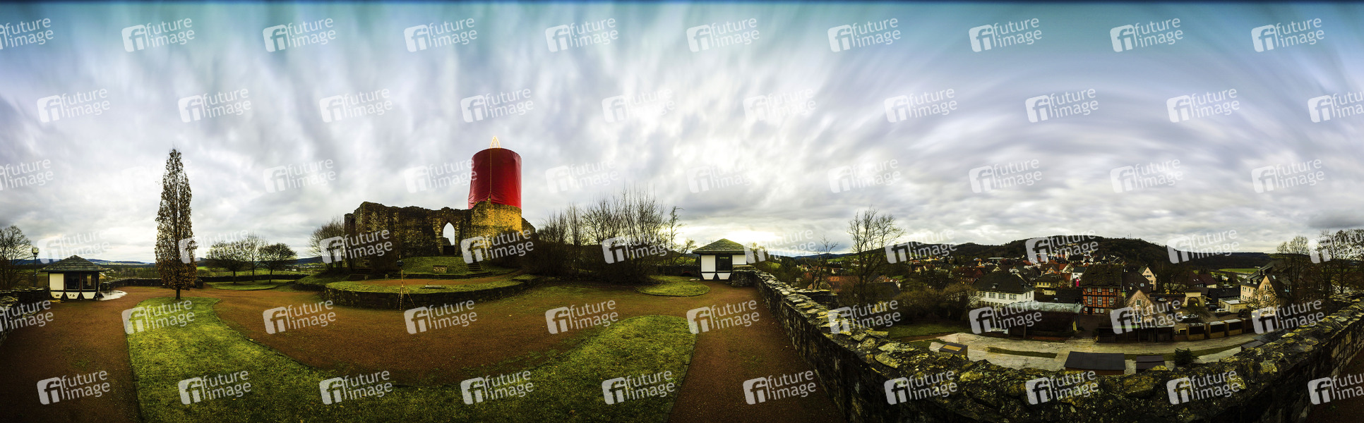Advent, Adventszeit, Weihnachtszeit, Weihnachten, Christmas, X-Mas, Kerze, Riesenkerze, Weserbergland, Eversteiner Burg, Sehenswürdigkeit an der Weser, Ruine, Höhenburg, Luftaufnahme, Panorama