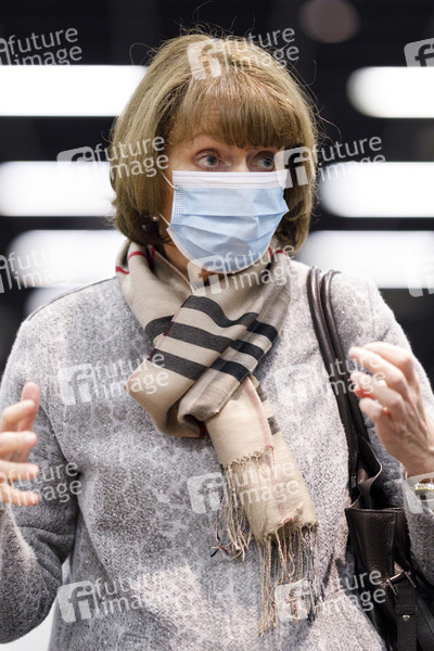 Henrietter Reker auf der Pressekonferenz: Der NRW-Justizminister auf Werbetour in Köln für die Kampagne des Weissen Rings zum Thema 'Kein Anschluss für Betrüger am Telefon' im Impfzentrum in den Messehallen. Auch dort sollen Plakate die alten Menschen vor der Enkeltrick-Masche warnen, die ohnehin die Messehallen für einen Impftermin aufsuchen. Köln, 05.02.2021