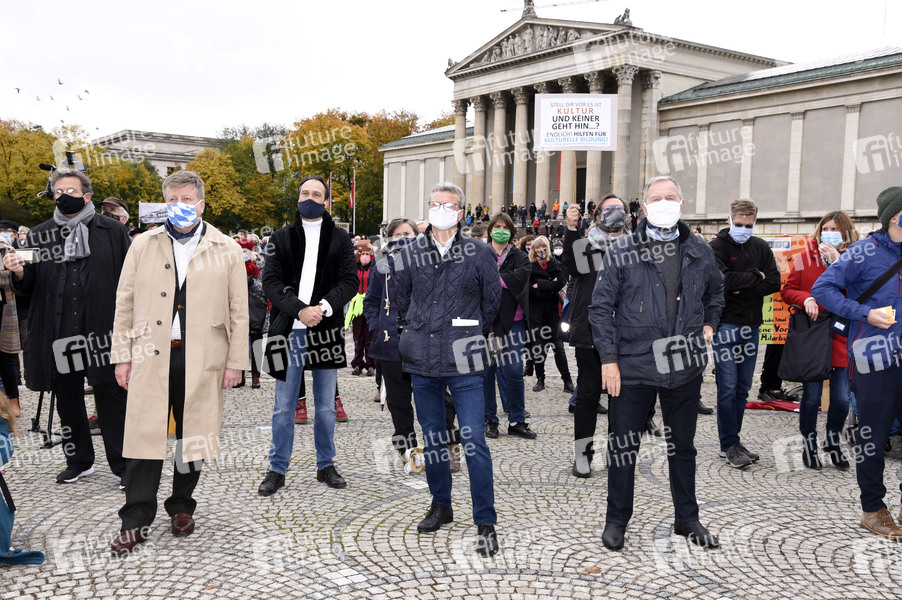 Mark Mast, Robert Brannekämper, Manfred Stecher, Bernd Sibler und Wolfgang Heubisch bei der Kundgebung 'Aufstehen für Kultur' auf dem Königsplatz. München, 24.10.2020