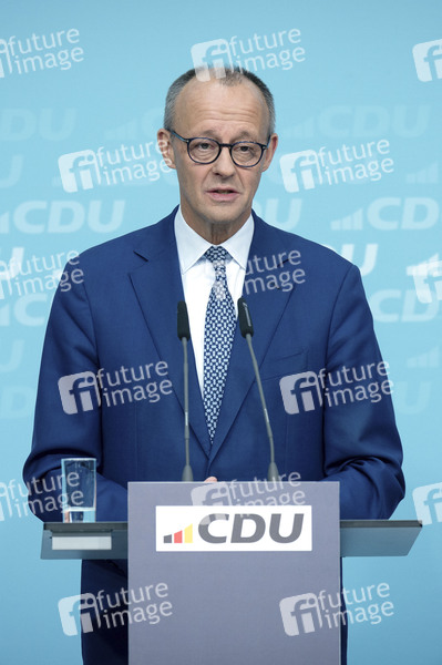 Friedrich Merz bei der Pressekonferenz zu den Ergebnissen der Präsidiumsklausur der CDU im Konrad-Adenauer-Haus. Berlin, 20.10.2025
