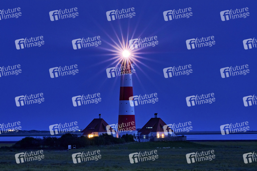 Reise, Urlaub, Sightseeing, Kultur, Sehenswürdigkeit, Tourismus, Leitfeuer, Warft, Feuerhöhe 41 Meter, Bauwerkshöhe 40 Meter, Tragweite des Lichts ca. 21 Seemeilen / 39 Kilometer, Gürtellinse, Turm, Befeuerung, Schifffahrtszeichen, Positionsbestimmung, Seefahrt